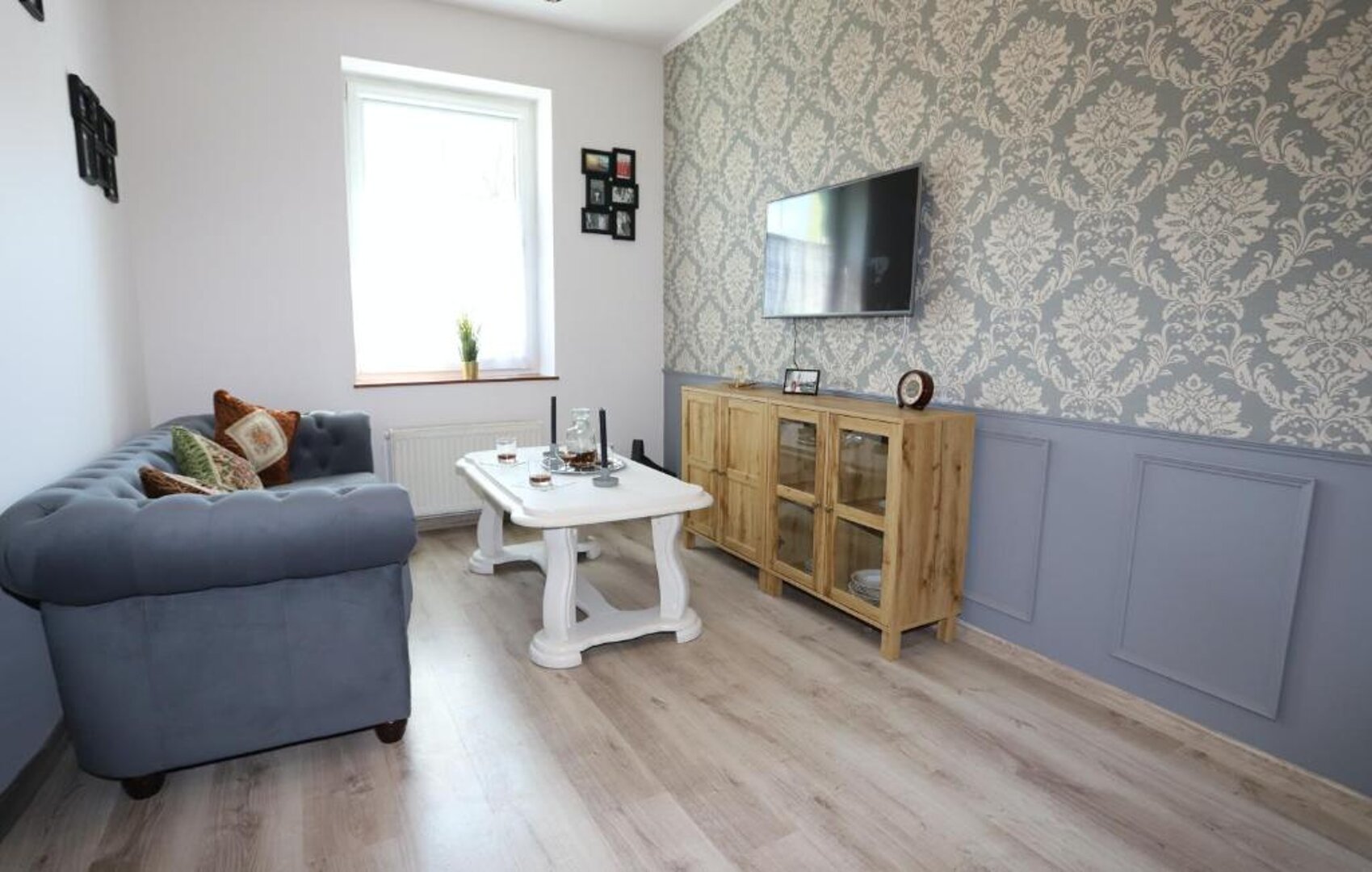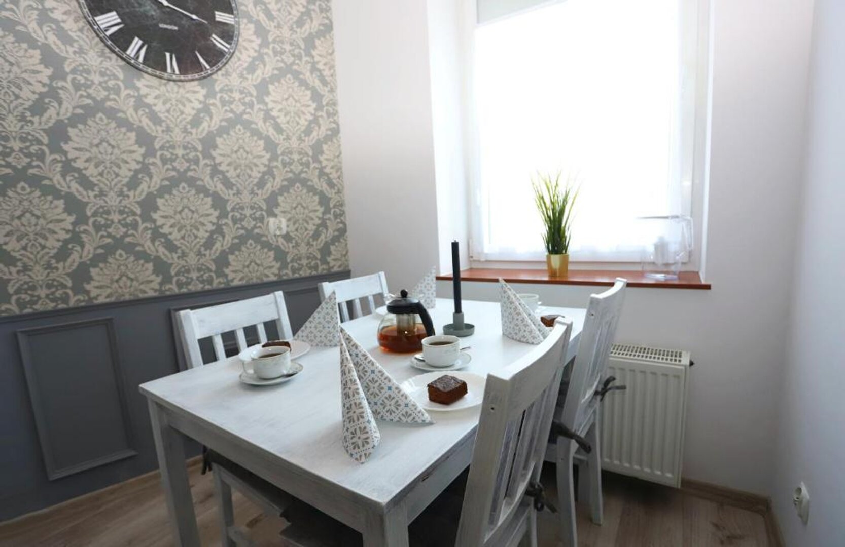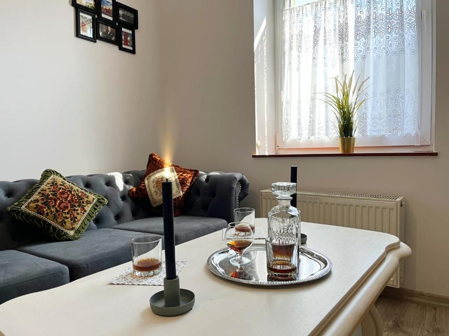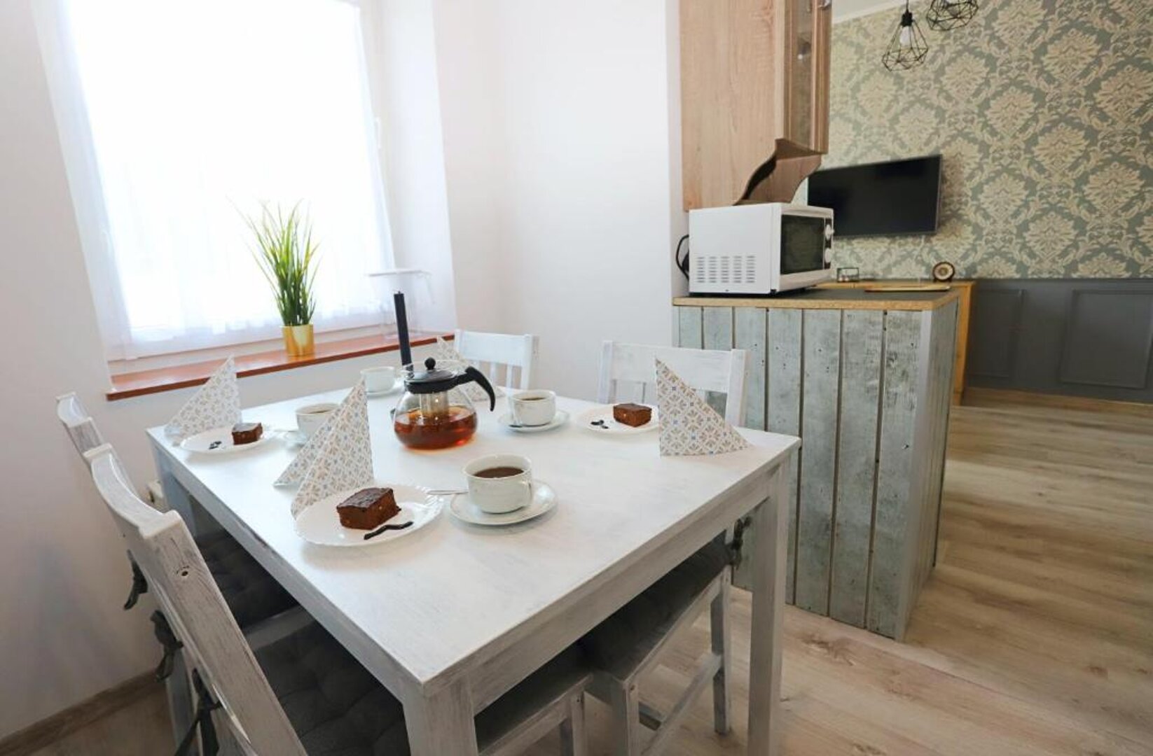 Każdy z naszych czteroosobowych apartamentów składa się z przestronnej kuchni, przytulnego salonu, sypialni oraz nowoczesnej łazienki. Wnętrza zostały urządzone z dbałością o detale, łącząc klasyczną elegancję z elementami angielskiego stylu – miękkie tkaniny, drewniane akcenty i subtelne kolory tworzą atmosferę relaksu i wyrafinowania.