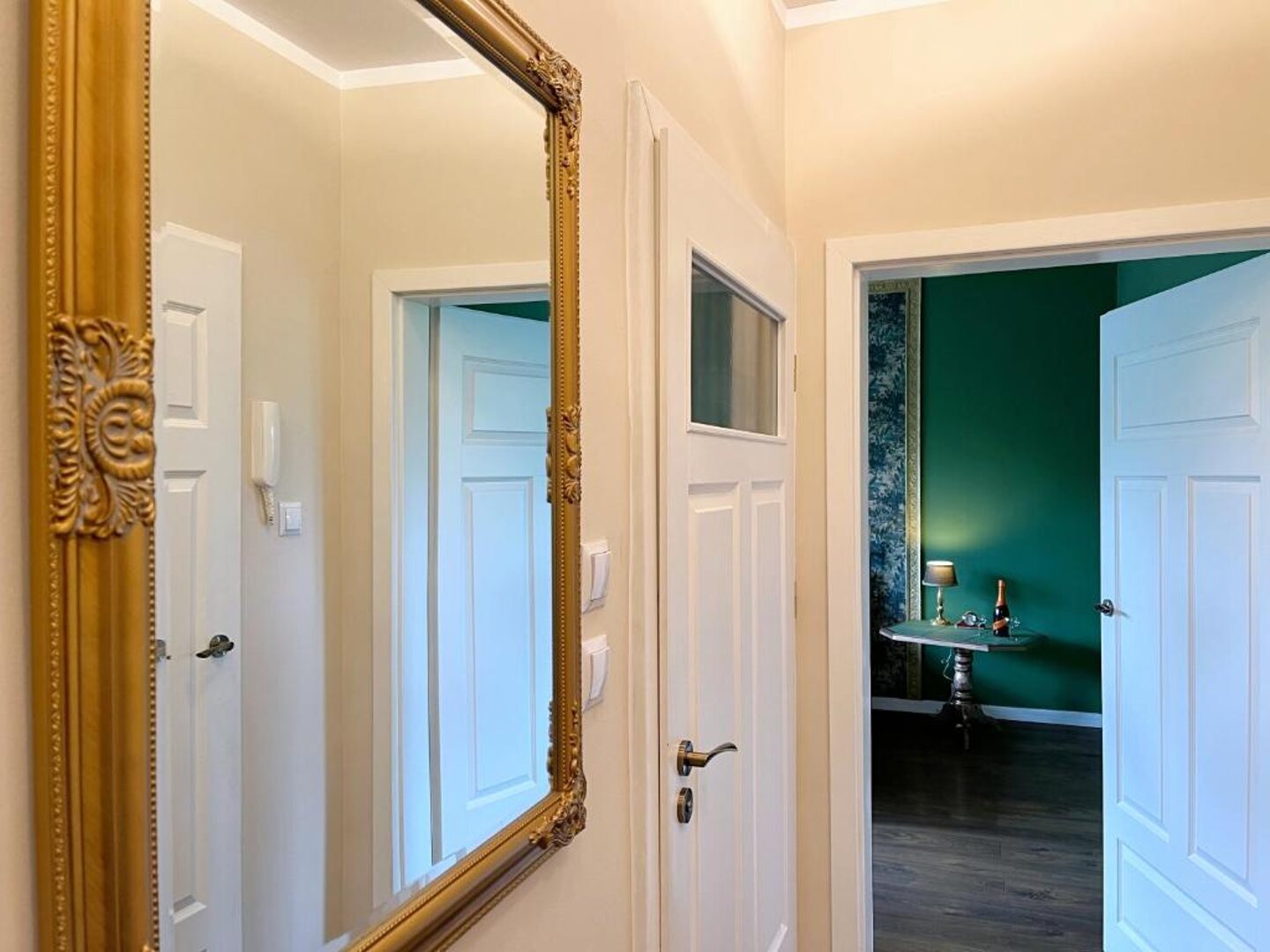 Położony na drugim piętrze urokliwej, poniemieckiej kamienicy, apartament "Ratuszowy" zachwyca swoją historyczną atmosferą i wyjątkowym położeniem. Wejście do niego prowadzą odrestaurowane, zabytkowe drzwi wejściowe, które dodają miejscu niepowtarzalnego