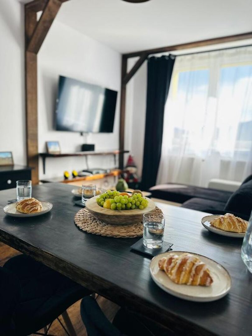Zapraszamy do naszego komfortowego apartamentu, położonego na 4. piętrze urokliwego budynku w sercu Boguszowa-Gorców. Z jego okien rozpościera się zapierający dech w piersiach widok na malownicze góry, co sprawia, że jest to idealne miejsce zarówno na relaks, jak i aktywne spędzanie czasu na świeżym powietrzu. Apartament składa się z przestronnego salonu z aneksem kuchennym, który stwarza idealne warunki do wspólnego gotowania i spędzania czasu z bliskimi. Przeszklone drzwi prowadzą na odkryty balkon, gdzie można delektować się poranną kawą lub wieczornym kieliszkiem wina, ciesząc się otaczającym krajobrazem. W apartamencie znajduje się również przytulna sypialnia, która zapewnia komfortowy sen, oraz łazienka z niezbędnymi udogodnieniami. Przedpokój oferuje miejsce na przechowywanie odzieży oraz bagażu, co podnosi komfort codziennego użytkowania. Nasz apartament to doskonała baza wypadowa do odkrywania piękna okolicy, w tym licznych szlaków górskich, stoków narciarskich oraz atrakcji kulturalnych. Niezależnie od pory roku, Boguszów-Gorce zachwyca swoją naturą i spokojem. Serdecznie zapraszamy do rezerwacji i odkrywania uroków tego wyjątkowego miejsca!