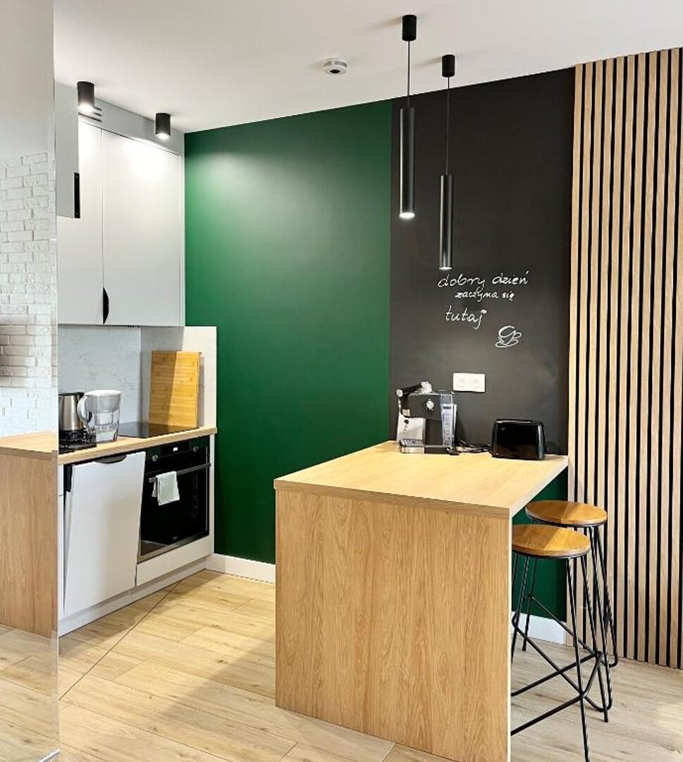 Apartament Zielone Podwale, to nowy obiekt na turystycznej mapie Wałbrzycha. Apartament usytuowany w apartamentowcu oddanym do użytku w IV kwartale 2023 roku. Sam obiekt został zaprojektowany w ten sposób, aby jego wnętrze było przyjazne nie tylko turystom, ale i osobom odwiedzającym miasto zielonego dębu, w celach biznesowych. Nasz apartament znajduje się na trzecim piętrze, na które dojedziesz komfortową windą, do której nie prowadzą żadne schody, co czyni obiekt przyjaznym, osobom mającym problem z poruszaniem się. Obiekt wyposażony we wszystkie, niezbędne sprzęty i akcesoria, które spotkasz w każdym domu. Znajdziesz tutaj chociażby pralkę, suszarkę do włosów, zmywarkę, telewizor czy ekspres do kawy. Dla komfortu gości, zadbaliśmy również o takie elementy jak sztućce, komplet garnków, kubków itd. Na gości zawsze będzie czekać czysta, pachnąca pościel, świeże ręczniki, ale i kawa, herbata, cukier czy sól. Dla osób, podróżujących turystycznie, posiadamy na miejscu liczne mapy z atrakcjami turystyczne, przewodniki czy ciekawostki związane z naszym regionem. Dla miłośników podróży kulinarnych, w samym obiekcie przygotowaliśmy kilka wskazówek związanych z kulinarną mapą Wałbrzycha. Nasza wyspecjalizowana firma sprzątająca, zadba o idealną czystość, która ma być jednym ze znaków rozpoznawczych Zielonego Podwala.