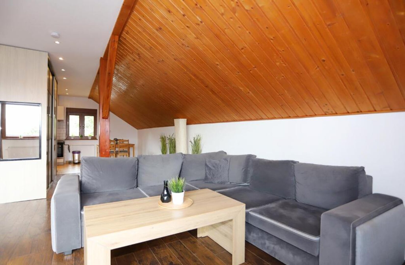 Obiekt obejmuje trzy eleganckie apartamenty, z których każdy ma powierzchnię 70 m². Każdy apartament składa się z przytulnej sypialni, przestronnego salonu oraz nowoczesnej łazienki, co czyni go idealnym miejscem na relaks. Dodatkowo, jeden z apartamentów ma wyjątkową dwupoziomową aranżację, zapewniającą jeszcze większą przestronność i komfort. Całość wyposażona jest w szybkie WiFi, co pozwala na utrzymanie ciągłej łączności ze światem.