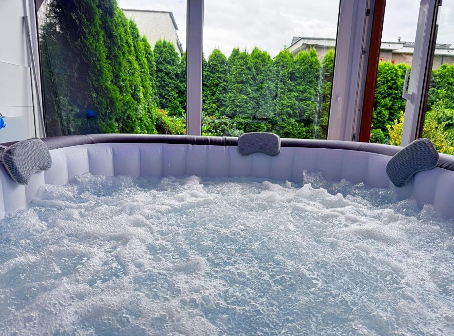 W obiekcie znajdują się również liczne tarasy i balkony, które oferują spektakularne widoki na otaczające góry, idealne do porannej kawy lub wieczornych spotkań z rodziną i przyjaciółmi. Przestronny ogród otaczający nieruchomość stwarza doskonałe warunki do relaksu oraz organizacji przyjęć na świeżym powietrzu.