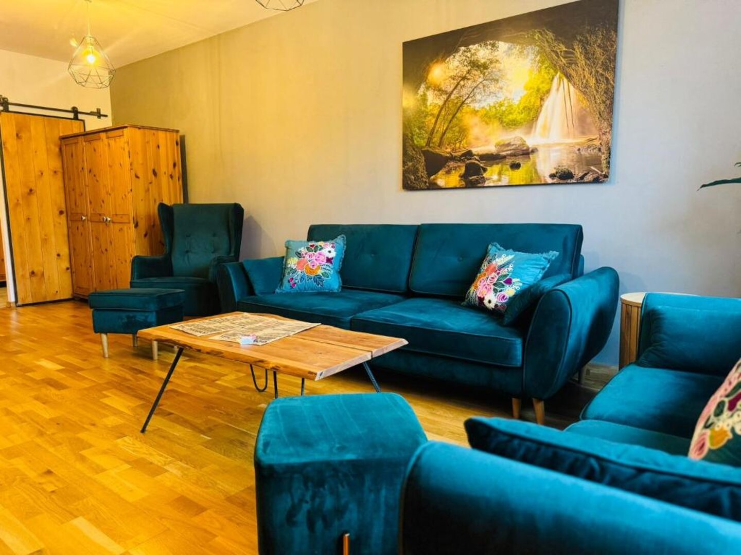 Rezydencja Borowa, usytuowana na drugim piętrze zabytkowej kamienicy w urokliwej miejscowości Jedlina, u podnóża malowniczej Góry Borowej, to wyjątkowe miejsce łączące historyczny charakter z nowoczesnym komfortem. W skład apartamentu wchodzą dwie przestronne sypialnie, idealne na relaksujące noclegi, oraz elegancka łazienka i osobna toaleta, zapewniające pełną wygodę. Słoneczna kuchnia z jadalnią to miejsce, gdzie można smakować lokalnych potraw i spędzać wspólne chwile przy posiłkach. Przytulny salon z nowoczesnym kominkiem elektrycznym stanowi idealne miejsce na odpoczynek po dniu zwiedzania, czy pieszych wędrówek, z dostępem do darmowego Netflixa i szybkiego internetu światłowodowego pozwala na relaks przy ulubionych filmach i serialach. Apartament posiada dużą garderobę. Na zewnątrz znajduje się przestronna wiata na grilla oraz bezpłatne, prywatne miejsce postojowe, gwarantujące komfort i swobodę podczas pobytu. Rezydencja Borowa to doskonałe miejsce dla osób poszukujących klimatycznego noclegu w historycznej atmosferze, z dostępem do wszystkich udogodnień nowoczesnego życia.