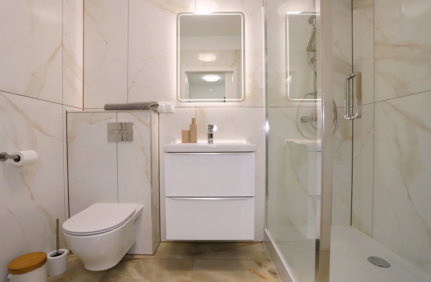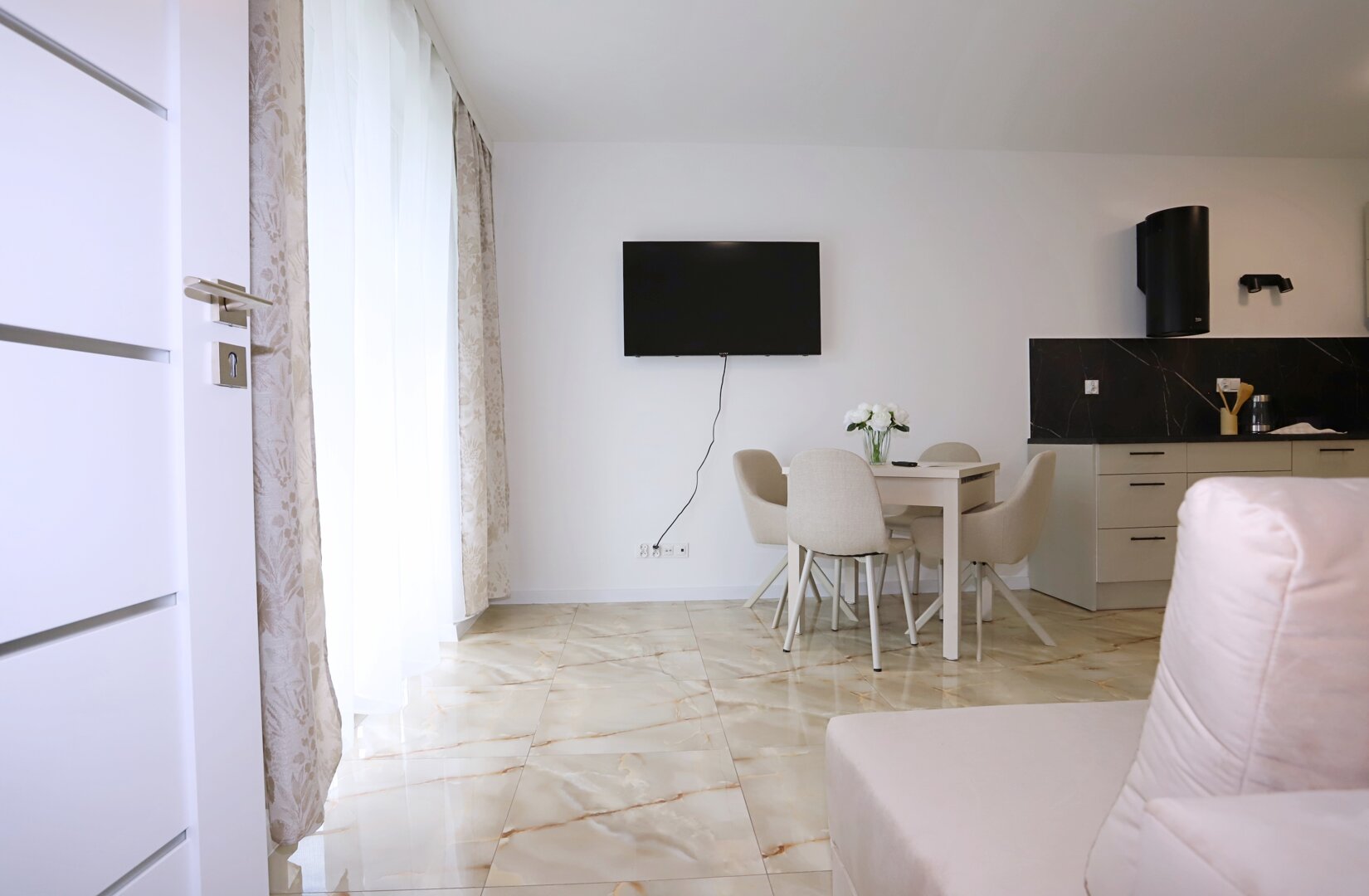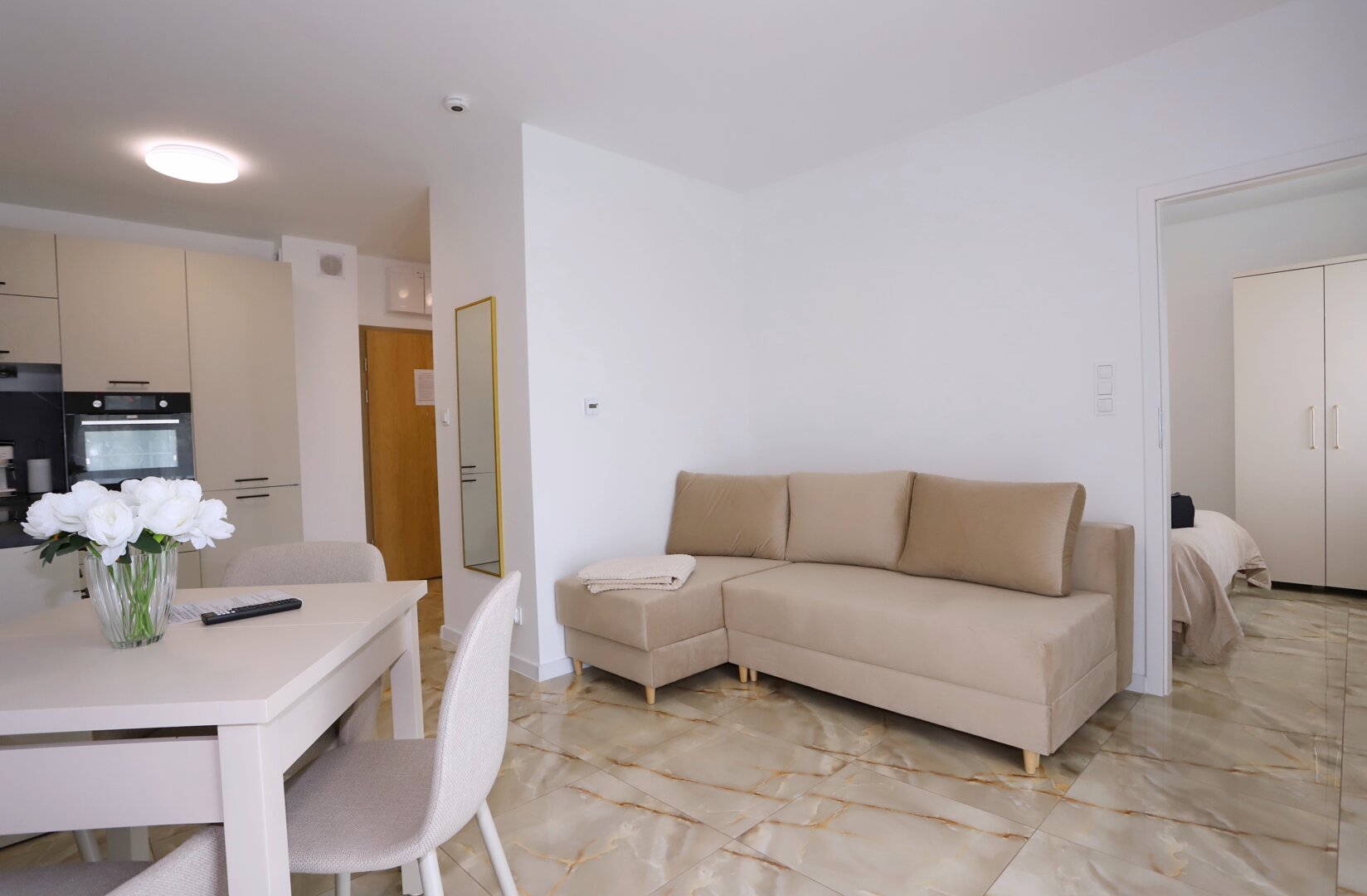 Dwa komfortowe apartamenty o powierzchni 33 m² każdy, usytuowane na parterze nowoczesnego budynku w spokojnej i zielonej dzielnicy Biały Kamień. Są to funkcjonalne i w pełni wyposażone mieszkania, idealne dla osób ceniących sobie wygodę i komfort.
