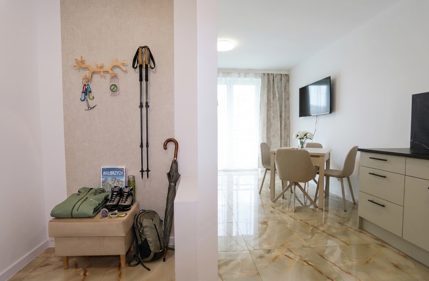 W sercu Wałbrzycha, między Ratuszem a Rynkiem, przy ulicy Sienkiewicza, znajduje się apartament na drugim piętrze zabytkowej kamienicy. Łączy on historyczny klimat z nowoczesnym komfortem. Składa się z kuchni, salonu i sypialni.